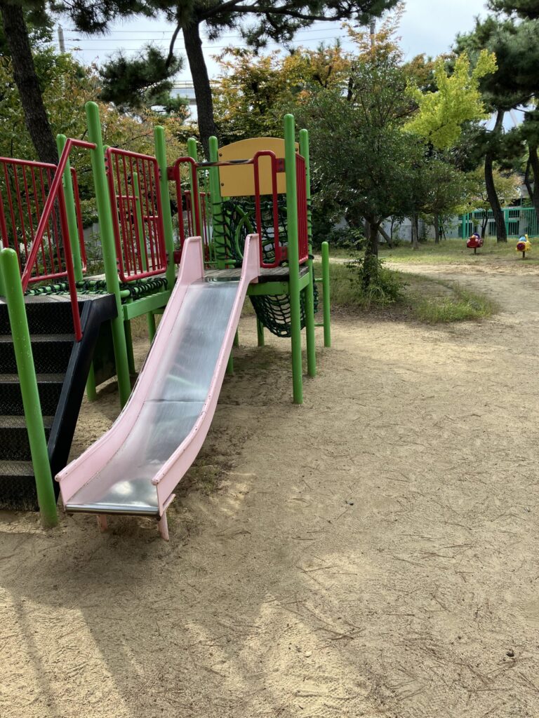 南側にある住吉川公園には滑り台などの遊具があり、幼児も安心して遊べます。すぐ近くにコンビニがあるのでトイレに困らないのも子連れには嬉しいポイント!